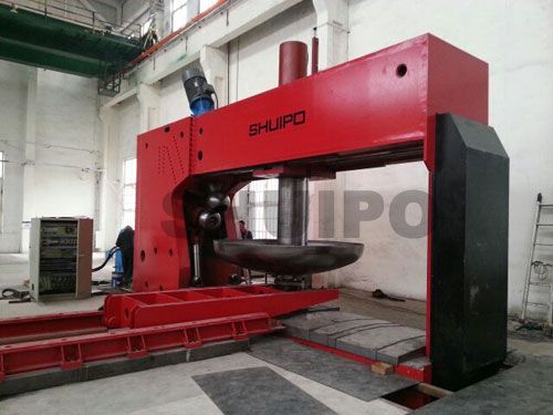 智能旋壓機是山東水泊焊割設備制造有限公司(SHUIPO)在總結了國內外旋壓設備設計,工藝調試經驗的基礎上,自行開發、研制的全自動封頭旋壓機。采用先進的PLC可編程控制技術,微電子技術,具有自動化程度高,工作效率高,無需編程,使用方便,運行平穩,性能可靠等優點,壓輪控制電機采用安川伺服電機,運行精度高,啟動力矩大,運行平穩,具有過載保護等功能,不僅提高了效率并且確保了批量生產過程中穩定的旋壓質量,還改善了操作環境。